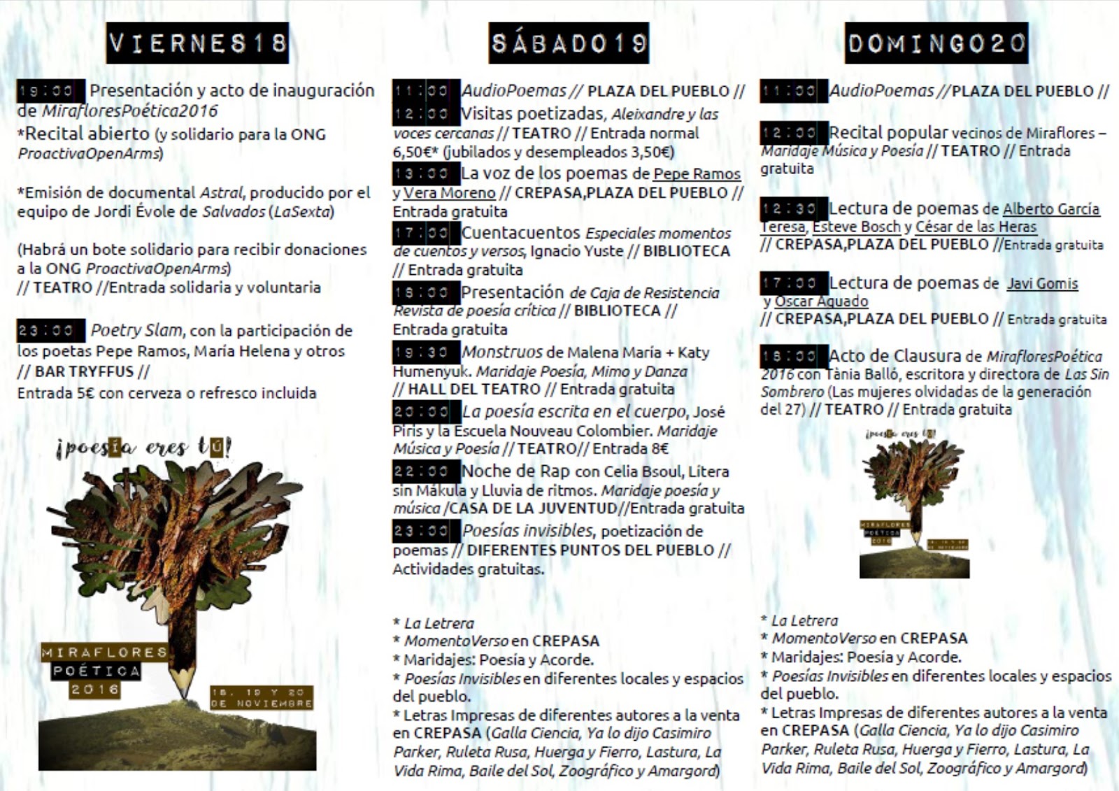 Este año la celebración de los actos de Día de la Poesía me lleva a compartir cartel con Ángeles Fernangómez y Emilio Porta. El acto tendrá lugar en el Centro Cultural Moncloa, un edificio que impone mucho, la verdad. El acto tendrá lugar a las 19:00 y después el mundo ya no volverá a ser el mismo. O sí, yo qué se.